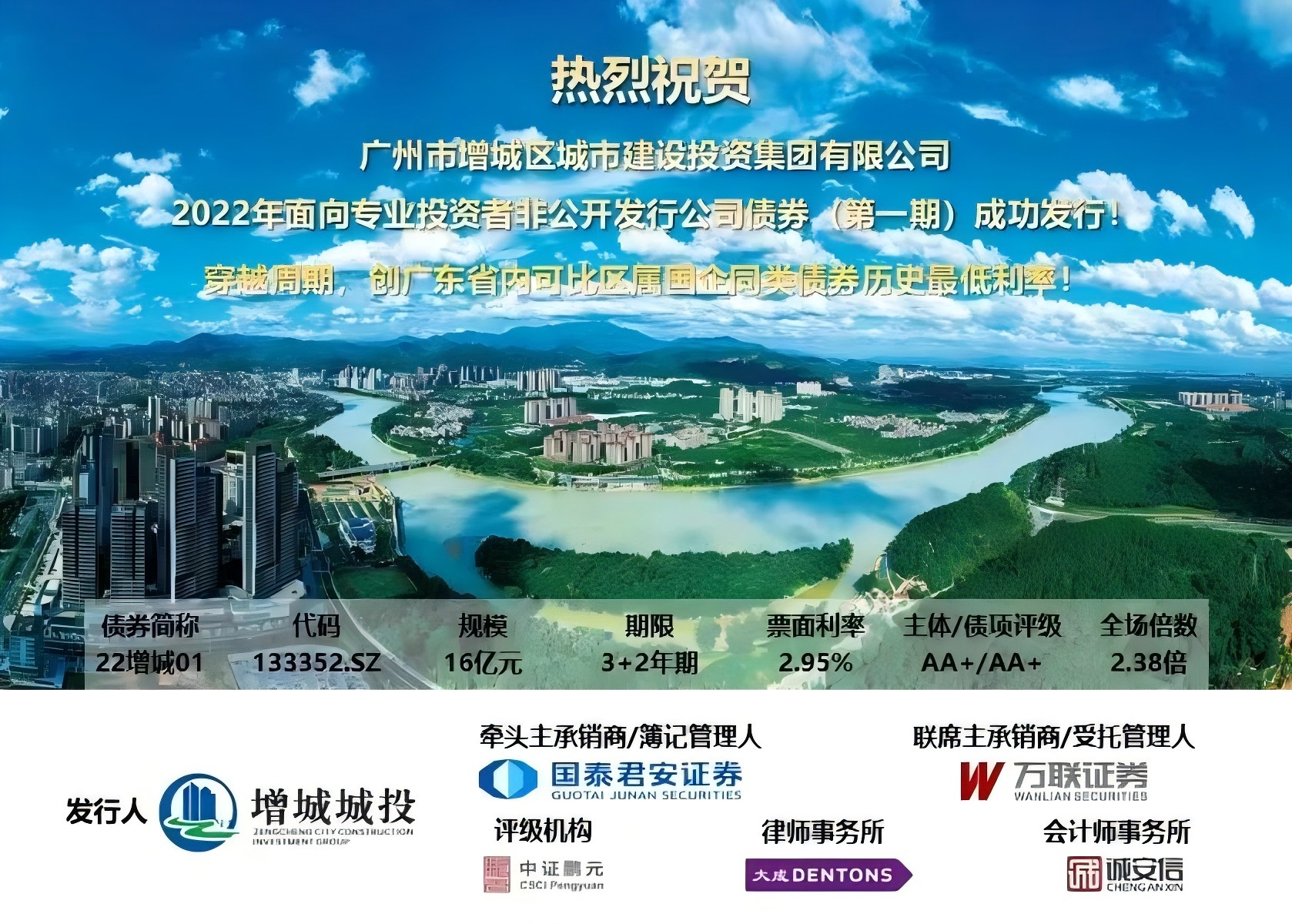 11月,集团面向专业投资者非公开发行公司债券30亿元(第一期)成功发行,创广东省内可比区属国企同类债券历史最低利率。